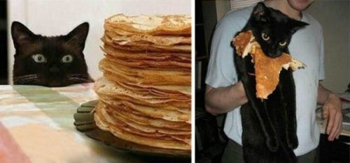 На фото с блинами — разные кошки.