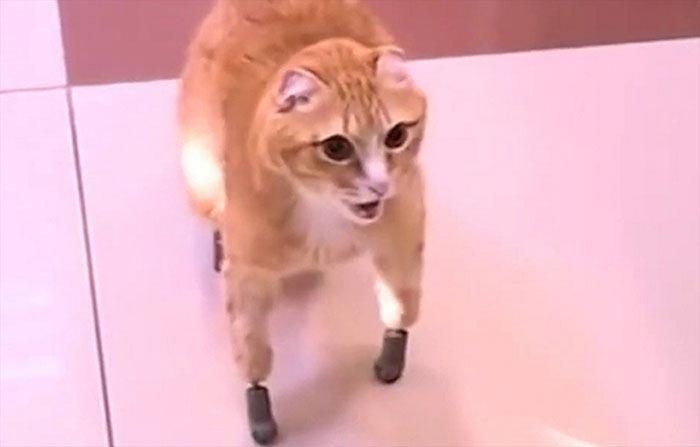 Пока что кот аккуратно пользуется своим новыми лапками, но наверняка он скоро освоится и сможет ходить увереннее
