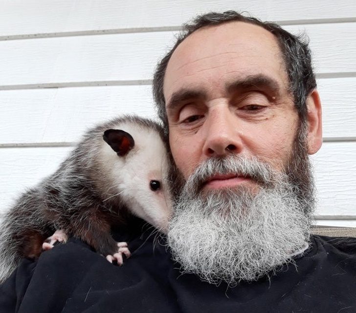Этого опоссума зовут Клементина и она искренне любит своего хозяина