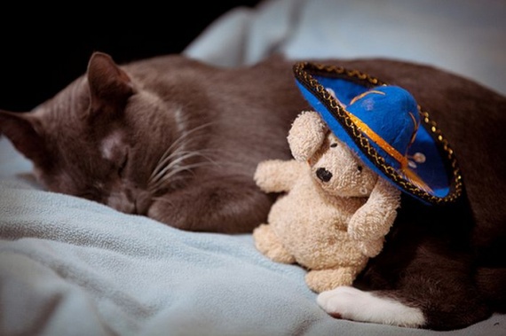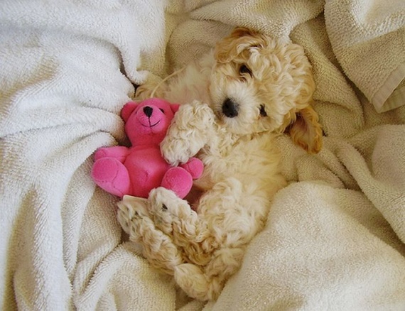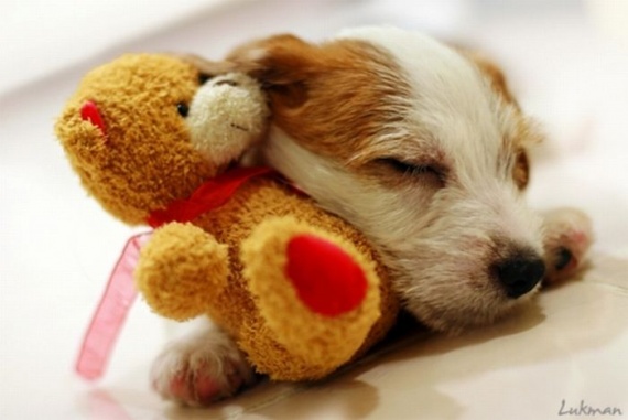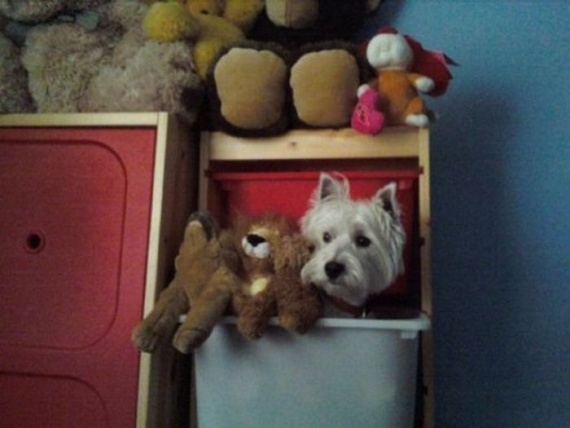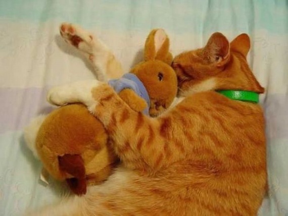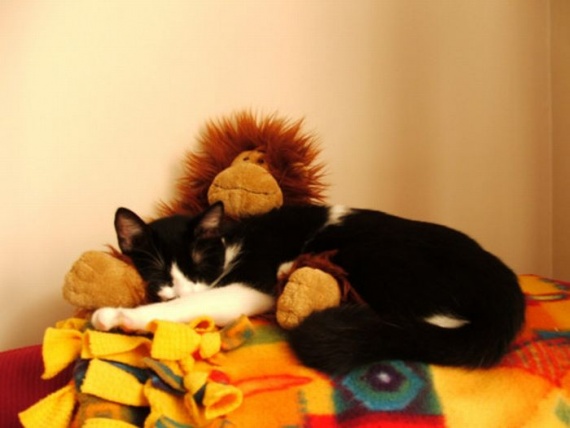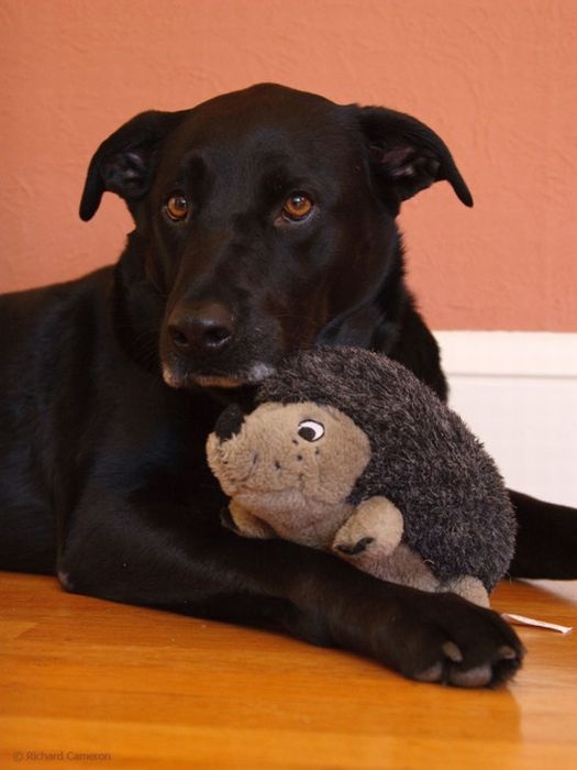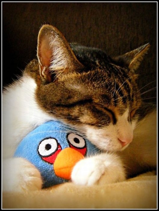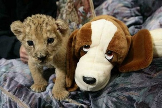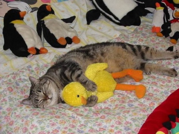 Милые домашние животные со своими мягкими игрушками.