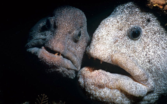 3. Зубатка полосатая (Anarhichas lupus)или как ее еще называют «атлантический волк» обычно встречается в холодных глубоководных водах. Интересно, что зубы у «атлантического волка» быстро снашиваются, однако каждый год в период похолодания старые зубы выпадают, а ни их месте появляются новые.