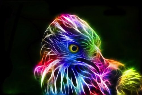 Используя фотошоповский плагин Fractalius и собственные навыки редактирования, обычные портреты животных она преобразует в удивительные светящиеся изображения, завораживающие взрывом цвета.