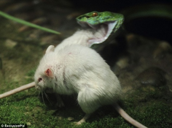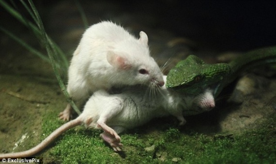 В зоопарке одна мышь хотела спасти другую из пасти змеи