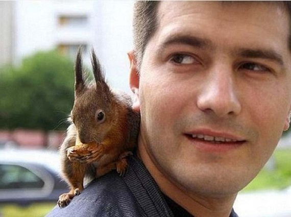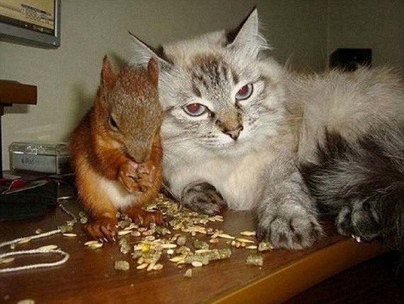 какой прелестный бельчонок и котик!!! парень молодчина!!!