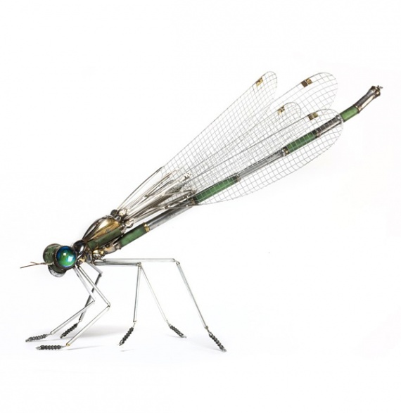 Он использует все виды переработанных вещей для создания потрясающих детализированных существ – от велосипедных частей до кухонных элементов. Его коллекция содержит морских животных, птиц, насекомых и каждая металлическая скульптура отличается высокой детализацией. Взгляните! Надеюсь, вам понравится.