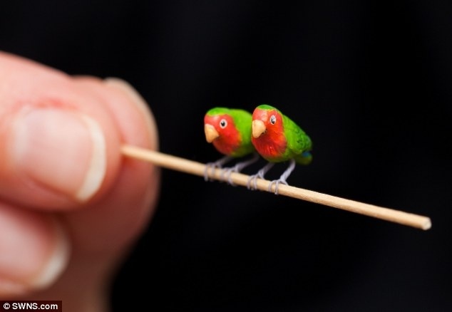 Эта птичка меньше половины арахиса, но тем не менее она в точности передает внешний вид и особенности реальной птицы.