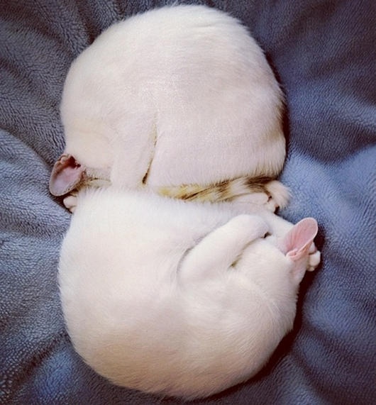 Эти две кошки не только похожи друг на друга как две капли воды, к тому же они спят абсолютно в одинаковых позах, будто зеркально отражение.