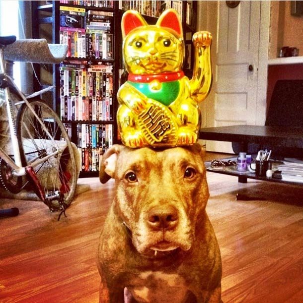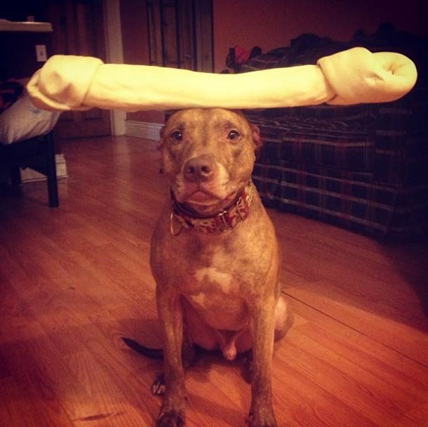 Самый невозмутимый питбуль в мире, который спокойно удерживает любой предмет, поставленный ему на голову хозяином.
