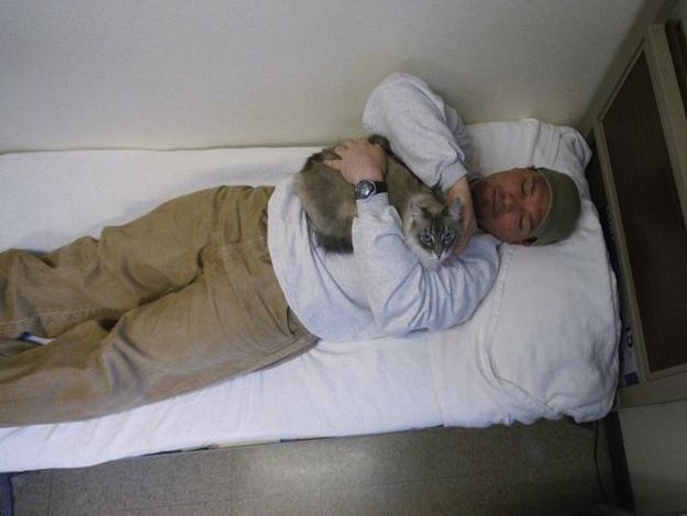 Заключенный Ричард Амаро с Клементиной в рамках программы помощи кошкам из приютов для бездомных животных