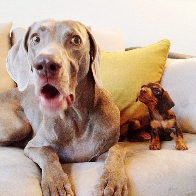 Веймаранер Харлоу и такса Инди - лучшие друзья