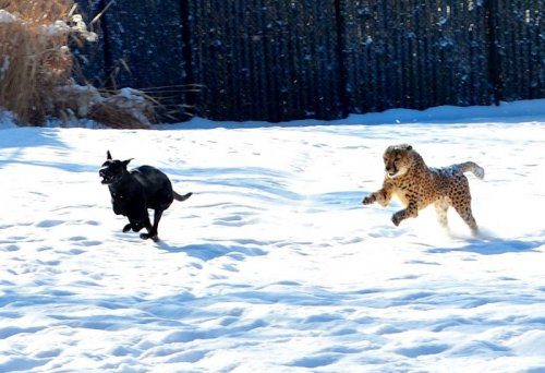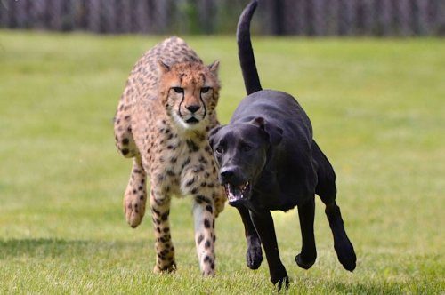 Необычные друзья, гепард и собака – обитатели зоопарка в Цинциннати, США.