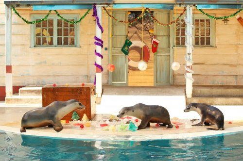 Рождественское угощение австралийских морских котиков, обитателей сиднейского зоопарка Таронга, Австралия.