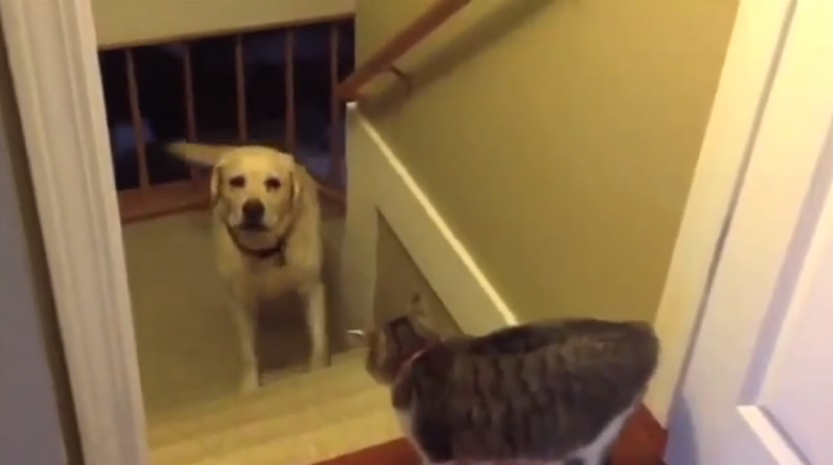 Коты из этого видео держат в страхе своих лохматых соседей по жилплощади и не дают им пройти:)