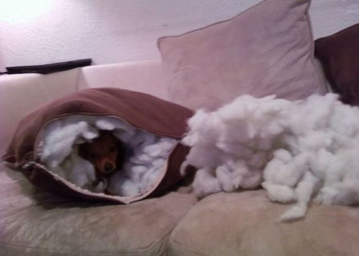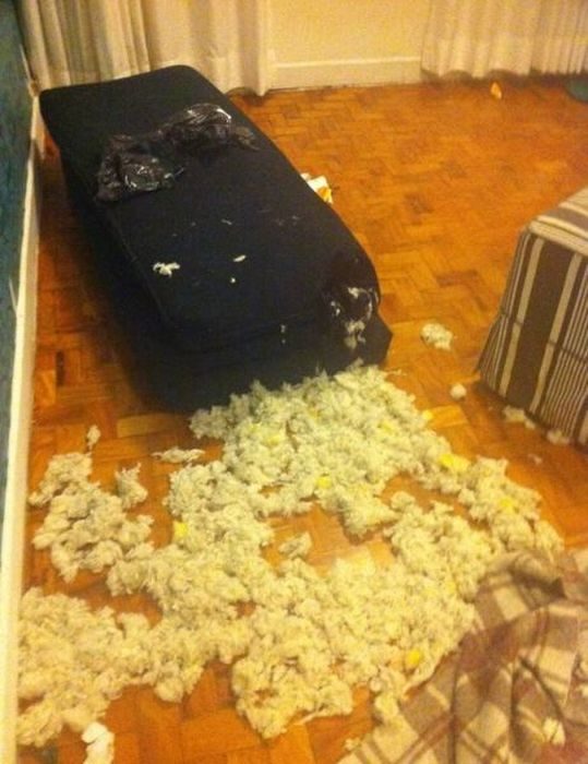 Оффиге-е-еть!!! У брата как-то собаку не взяли с собой за город. Приехали вечером, а она из подушки в спальне все перья наружу «выпустила»… Потом два дня просидела под кроватью…