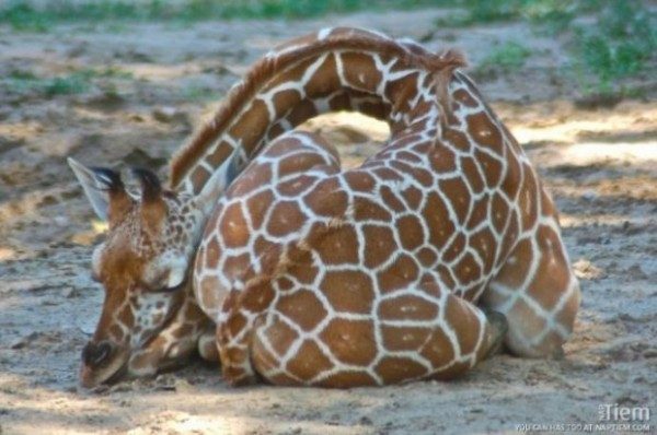 Ночью жирафы спят лежа, согнув шею таким образом, чтобы можно было положить голову на нижнюю часть задней конечности. Кстати, спать укладываются они очень быстро — за 15-20 секунд. Процесс укладывания выглядит следующим образом: жираф сначала опускается на грудь, а потом на живот.