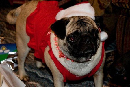 а особенно они любят, когда шизофреники-хозяева наряжают их в костюмы Деда Мороза…