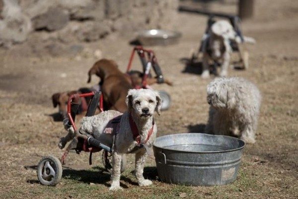 Жители делают коляски для собак, пострадавших от жестокого обращения своих бывших хозяев. В основном, у собак проблемы со зрением и слухом. Создатель приюта — Патрисия Руис.