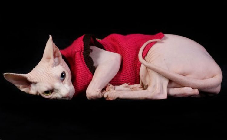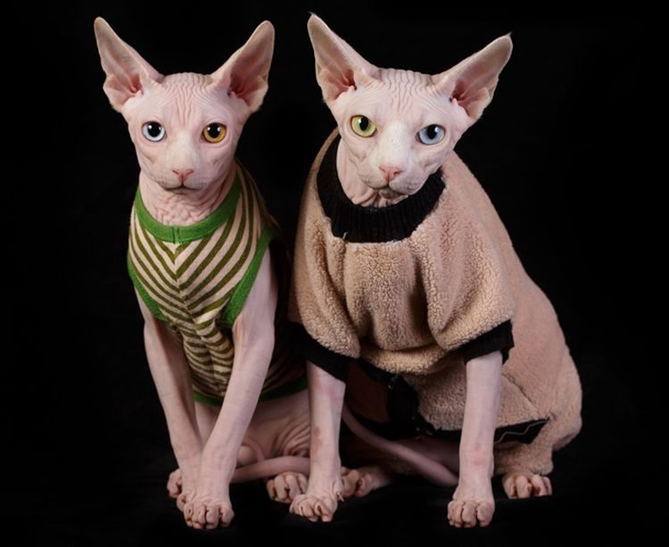 И хотя у этих котов нет меха, у них есть целые шкафы одежды! Их владелица Живиле Юсескайте, которая имеет еще восемь голых кошек, одевает своих любимцев в крошечные, но модные пальто, свитера, кардиганы и толстовки.