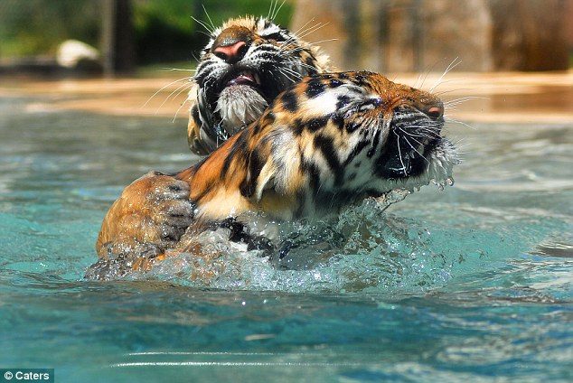 Большие котики, такие как тигры, львы и т.д., используют воду чаще всего в качестве остужающего средства, чтобы остыть на жаре. Но эти полосатые красавцы обожают плескаться в водоемах!