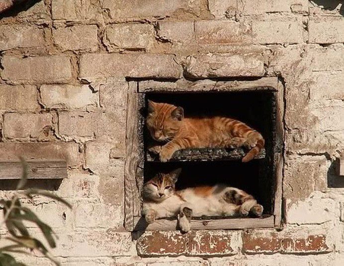 Эти кошки спят везде