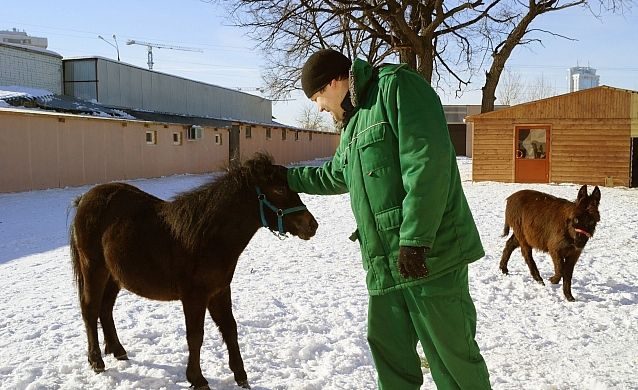 «Лексус у нас лентяй! Но мои коллеги знают, как заставить его больше двигаться. Они долгое время работали на ипподроме с лошадьми», — говорит Сергей и гладит пони.