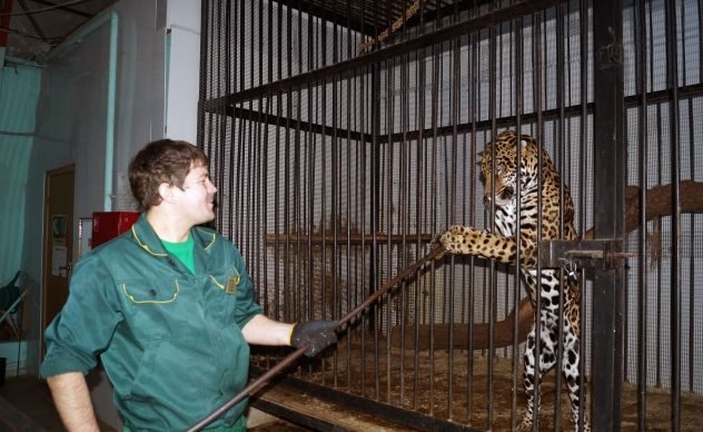 «Перед тем как зайти в клетку — нужно морально себя настроить и успокоить. Животные, конечно, привыкли ко мне, но не стоит забывать, что они в первую очередь опасные хищники. Все замки, засовы, двери клеток нужно несколько раз проверить до и после уборки», — говорит Сергей.