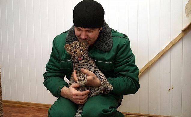 «Интересная судьба у этого леопарда. В декабре она родилась у местной пары Хана и Фелиции. Из-за сильных морозов родителей с дочкой пришлось разлучить: детёныш часто выходил из питомника в клетку. Ветеринары зоопарка приняли решение, что котёнок должен жить в тепле, иначе заболеет. Овчарка Пайпер поделилась молоком и спасла котёнка от жутких холодов», — рассказывает Сергей.
