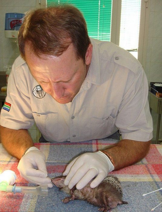 Доктор не только огромных хищников лечит, но и маленьких ёжиков, например.