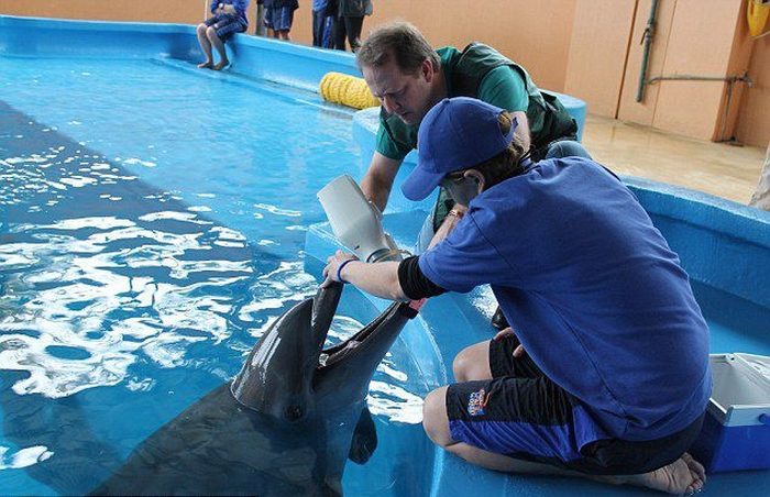 Рентгенодиагностика дельфина. У меня, кстати, такой же переносной аппарат есть.