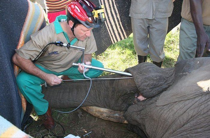 Ох, нелегкая это работа, отпилить такой зуб бегемоту.