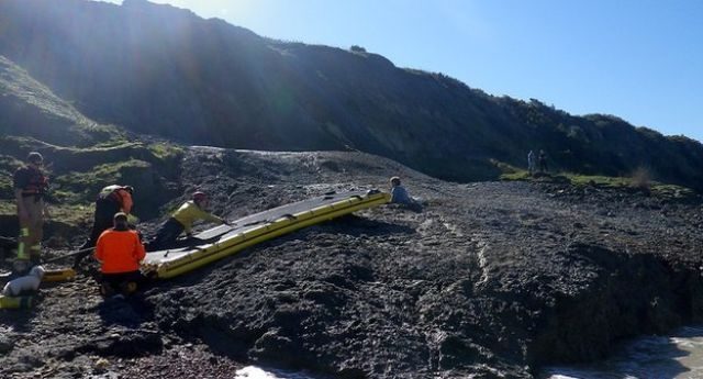Спустя несколько часов практически в том же месте пожарным и береговой охране пришлось спасать 60-летнюю женщину, которая также застряла по пояс в грязи