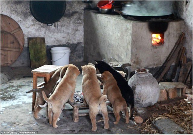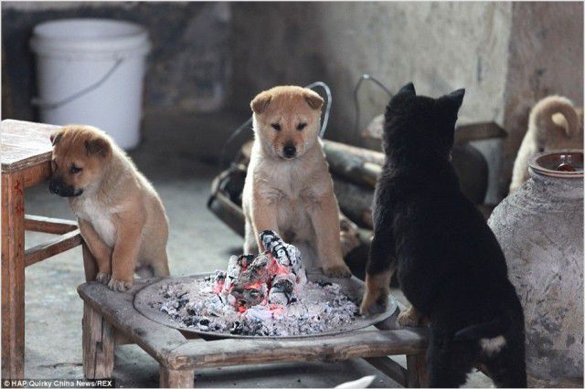 Когда очень холодно, щенки лают до тех пор, пока им не разожгут «обогреватель».