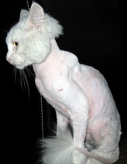 Приехал забирать когда — удивился. Доктор сказал что растворителем мыть нельзя, а водой бесполезно. Поэтому его усыпили слегка и обрили под пуделя Артемона. Кастрировали и сделали все прививки. Доктор сказал что коту не больше года и понос у него пройдет только месяца через три. В кассе взяли еще примерно 60$.