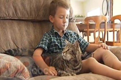 Как кошка спасла ребенка (видео)