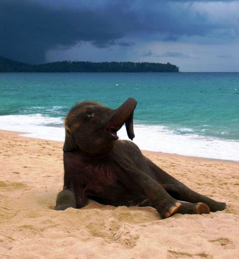 Маленькому слоненку впервые показали море и вот что из этого получилось. Фотографии сделаны на острове Пхукет, Таиланд.