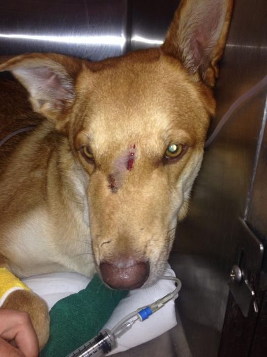 Псу повезло — укус змеи пришелся на костную часть морды, ее клыки отскочили от кости