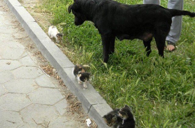 В Сербии, в городе Сремске Митровице, собака потеряла щенков и усыновила котят. И куда теперь ей с этими пушистиками — непонятно: в приют для бездомных собак нельзя котятам, а в приют для кошек — собаке. Но думаю, что кто-нибудь семейство подберет.