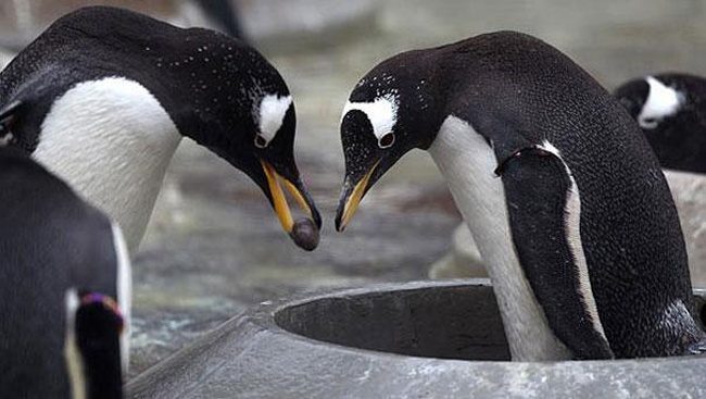 Пингвины делают предложение своей избраннице, преподнося камешек гальки.