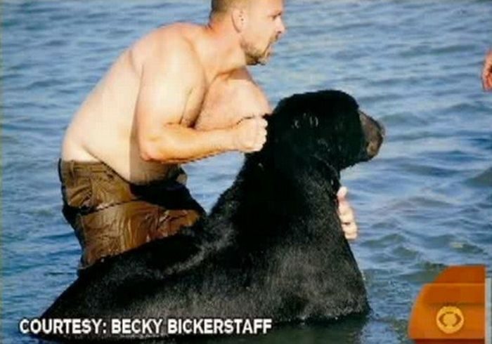 Мужчина практически не пострадал, если не считать царапин от лап медведя и порезанной ноги ракушкой