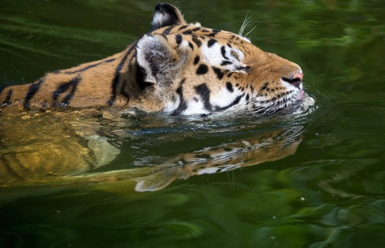 8. Сибирский тигр плавает в бассейне зоопарка в Вуппертале, Германия.