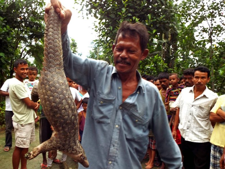 15. Индийский крестьянин держит китайского ящера недалеко от национального парка Казиранга, в северо-восточном штате Ассам в Индии.