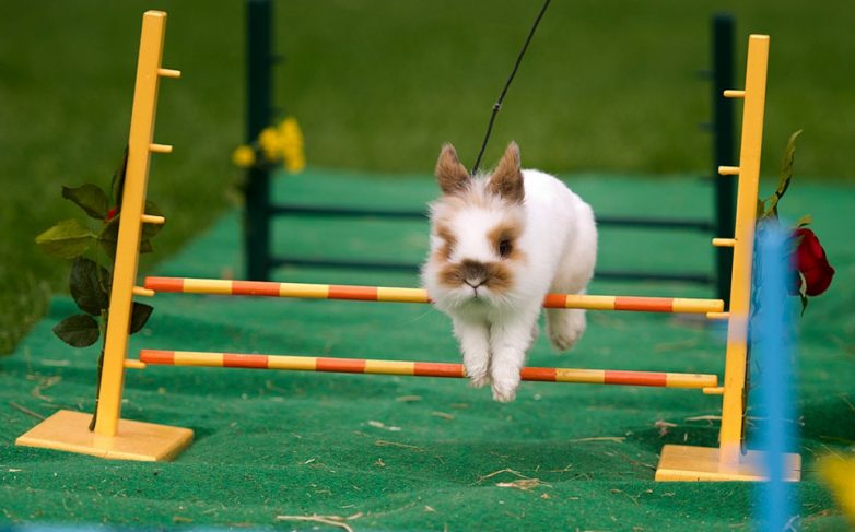 25. Кролик преодолевает препятствие на ярмарке животных в Дрездене.