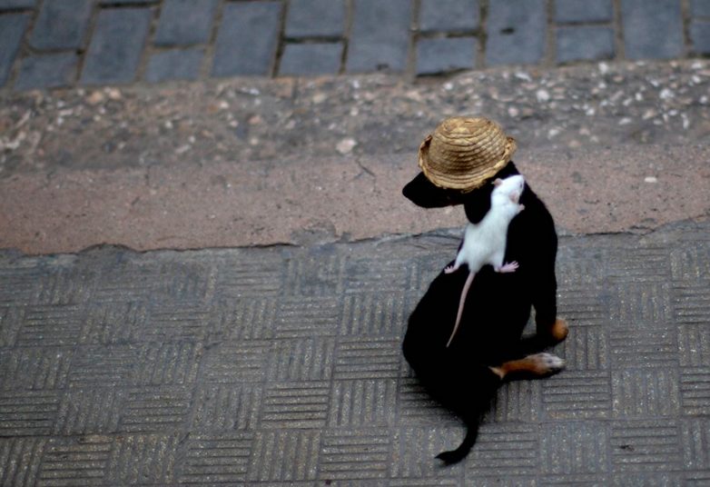 24. Собака по кличке Негрито с мышью на спине в Гаване, Куба.