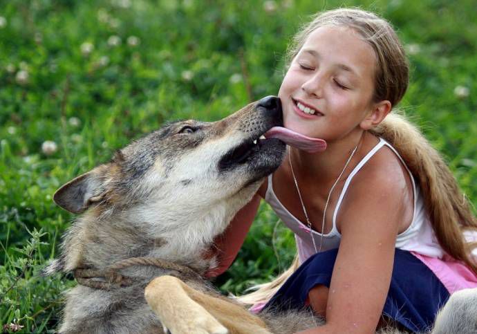 Дочка Олега, десятилетняя Алина, обращается с волками как с домашними питомцами, а те отвечают ей лаской и даже позволяют девочке кататься на себе. Когда Алина гладит волка, тот никогда ее не укусит, а наоборот норовит лизнуть в лицо, полностью подчиняясь хозяйке, как это принято в волчьей стае с ее строгой иерархией. Трудно поверить, глядя на эти фото, что речь идет о свирепых хищниках.