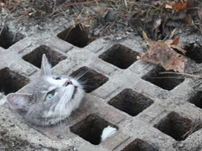 кот под своим весом все дальше проваливается в щель, которая, чем дальше, тем уже, кроме того, кот (кошка) пытаются выбраться, тем самым усугубляя сползание вниз.В конечном итоге несчастное животное получает серьезные внутренние повреждения и от этого в муках умирает....((((