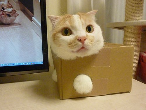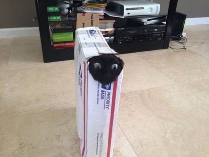 Хозяина кота с хлебом на морде-к стенке! А любовь к коробкам-вещь совершенно не объяснимая…