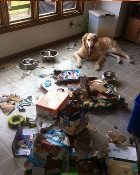 Подборка фотографий с собаками, которые остались дома одни.