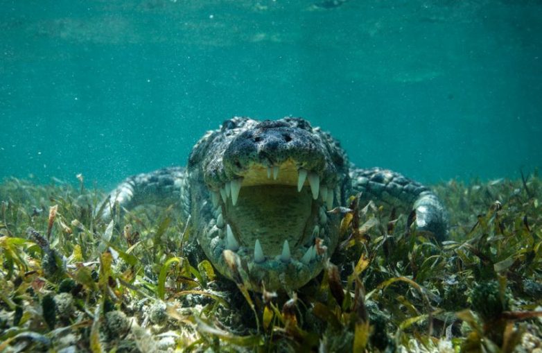 32-летний фотограф Майк Коростелев встретился лицом к лицу с зубастым американским крокодилом у побережья острова Банка Чинчорро в Мексиканском заливе.