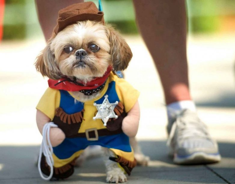 «Смотрите, новый шериф в городе!». Собака в костюме полицейского в Хантингтон-Бич, штат Калифорния.