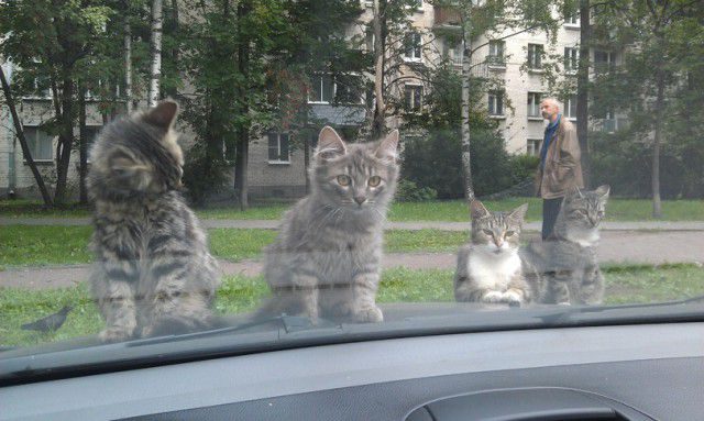 Сегодня сидел в машине и ждал клиента в одном из питерских дворов (рассказывает автор). Повстречал вот такое семейство.